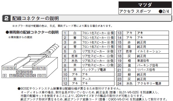 新型アクセラ用24PINオーディオ配線