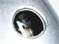 左右2箇所にあるゴム栓の内、(ハンドルに向かって)右側の栓をめくります。