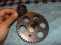 写真をアップしました・・・バイクのクランクケース内は夜なので開けられませんでしたが。この二つのギアのうち、大きい方はキックからの回転を小さいギアに伝え、小さいギアは1つ目の写真にあるギザギザからドライブフェイスに伝える役割をしているかと思います。