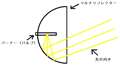 黄色の線は本来あってはならない光。HIDの遮光板から漏れた光が下半分を照らしてしまいこれが上向きの光となってしまいます。つまりこれがグレアですね。