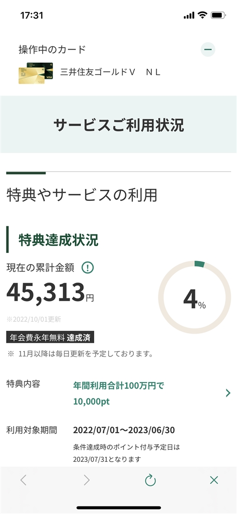 『今年度は達成できない気がしてきました・・・』三井住友カード 三井住友カード ゴールド(NL) ダンニャバードさんのクチコミ掲示板画像1/2