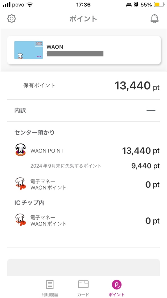 WAONアプリの保有ポイント→内訳で確認