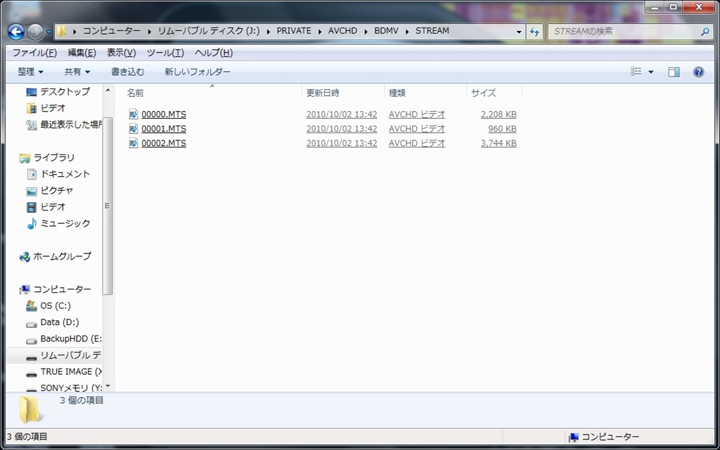 動画(AVCHD)ファイル