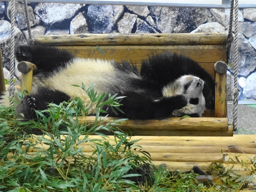 90%おっさんのようなベンチで寝てるパンダ