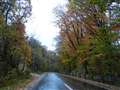 濡れた道路の絵がまた良いですが(少々キーを落としたいです)、車が落ち葉で滑りそう。(^_^)