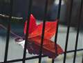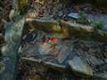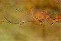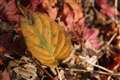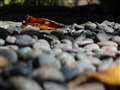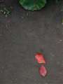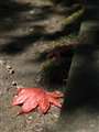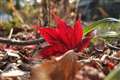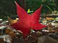 透過光で色づいた星型の落ち葉、葉脈まではっきりと濃厚な赤が良いですね!!