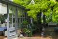 2枚目はオールグリーンの中に小屋一軒。もみじかカエデ