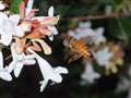 近所の公園のアベリアの垣根に花が咲いたので、今日、覗いてみると、ミツバチさんを見つけましたので撮影してみました。