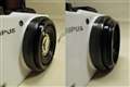リコーのキャップとケンコウのステップアップリングの組み合わせレンズキャップ、オリンパス風青線入り。