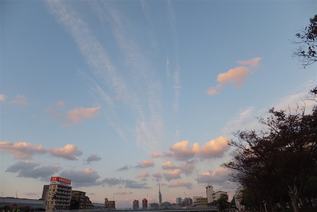 広角端で夕暮れ時の空を