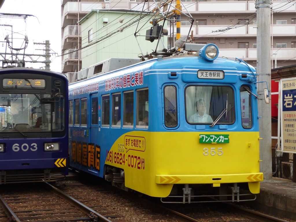 @ 堺市内から通天閣のある恵美須町まで、この電車で200円です。
