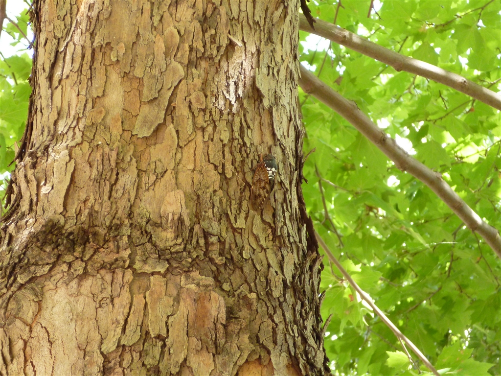C 木の肌に紛れたアブラゼミの姿も、そこそこ満足のいく撮れ方です。