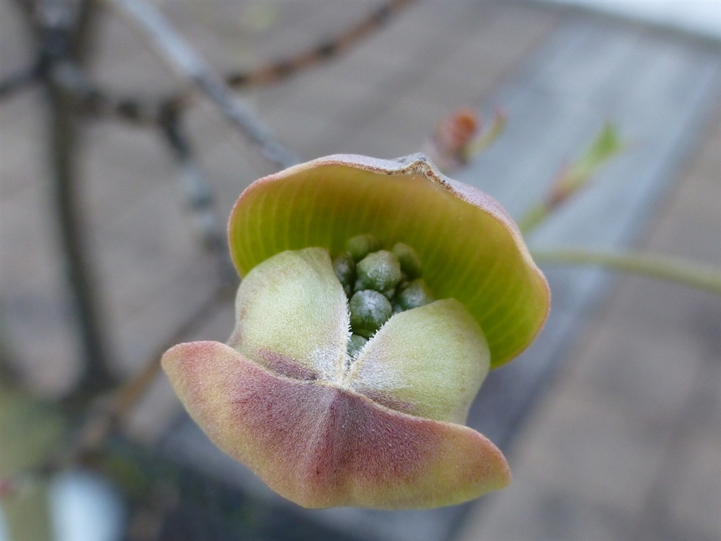 A 開きかけで、地味なハナミズキです。