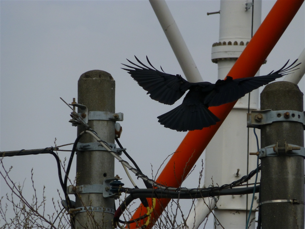 カラス 鉄塔に停まる前