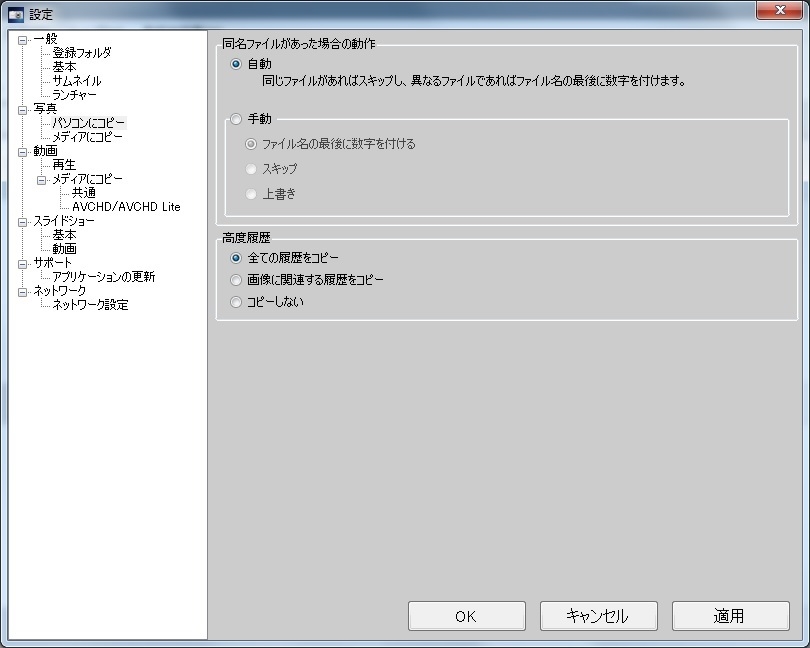 パソコンにコピーの設定