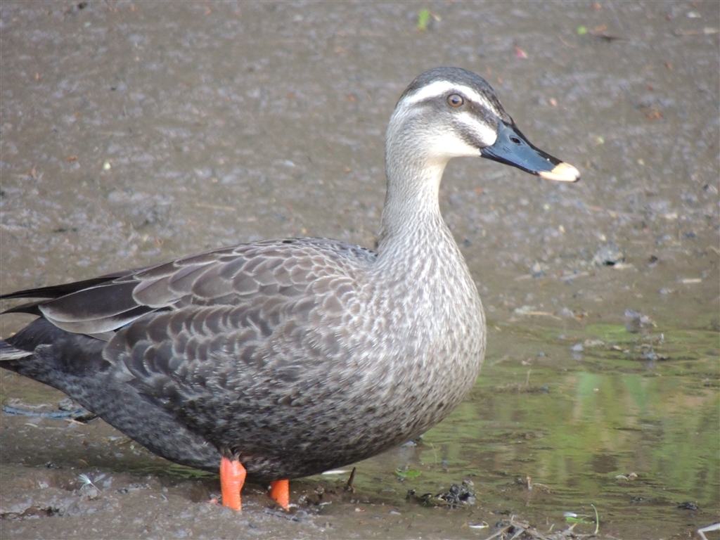 田んぼにカモが