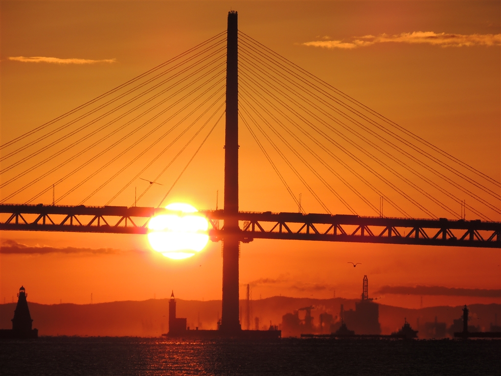 朝日とカモメ