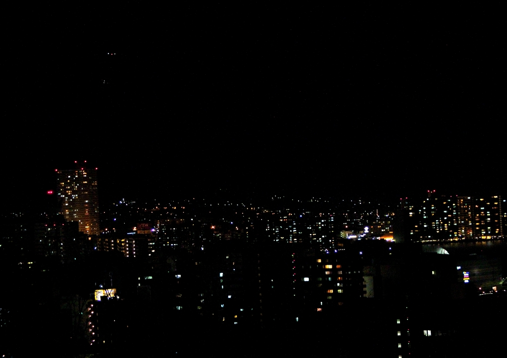 大津PA夜景風景(手持ち撮影・・体は柵に寄り添う)