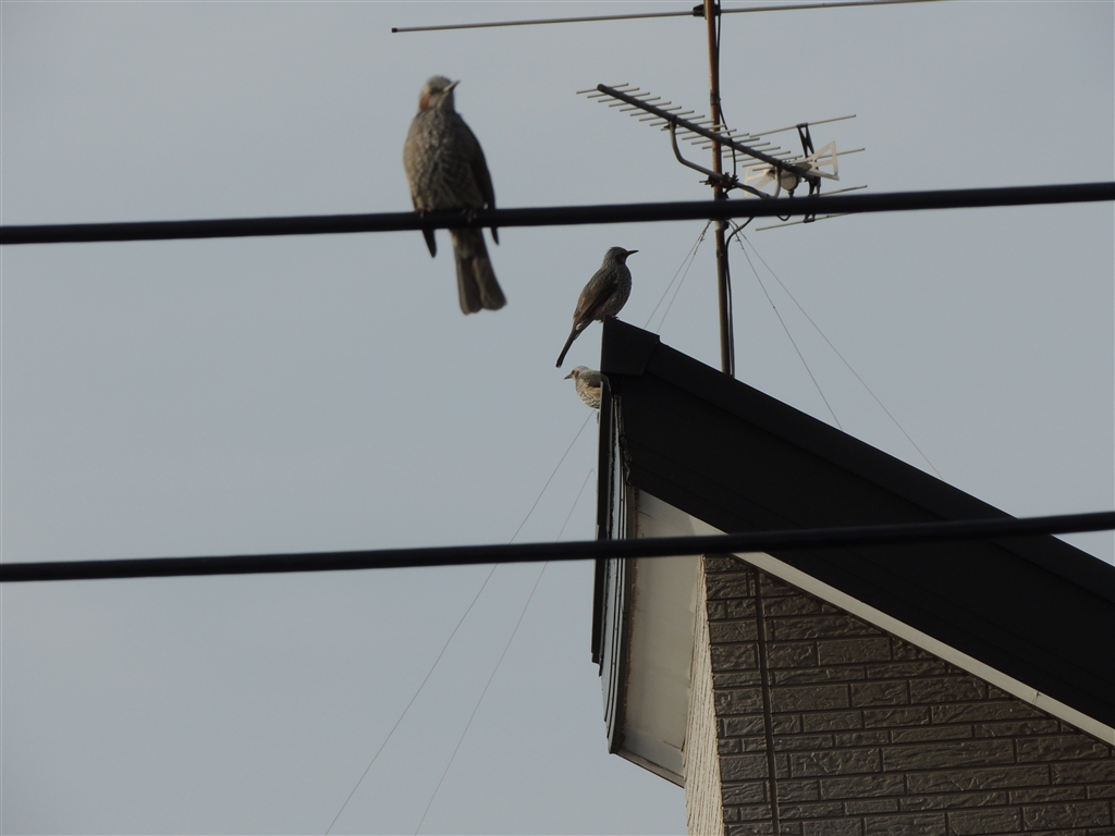 2階のベランダからヒヨドリを撮っていたら、もっと向こうに別の鳥の影が