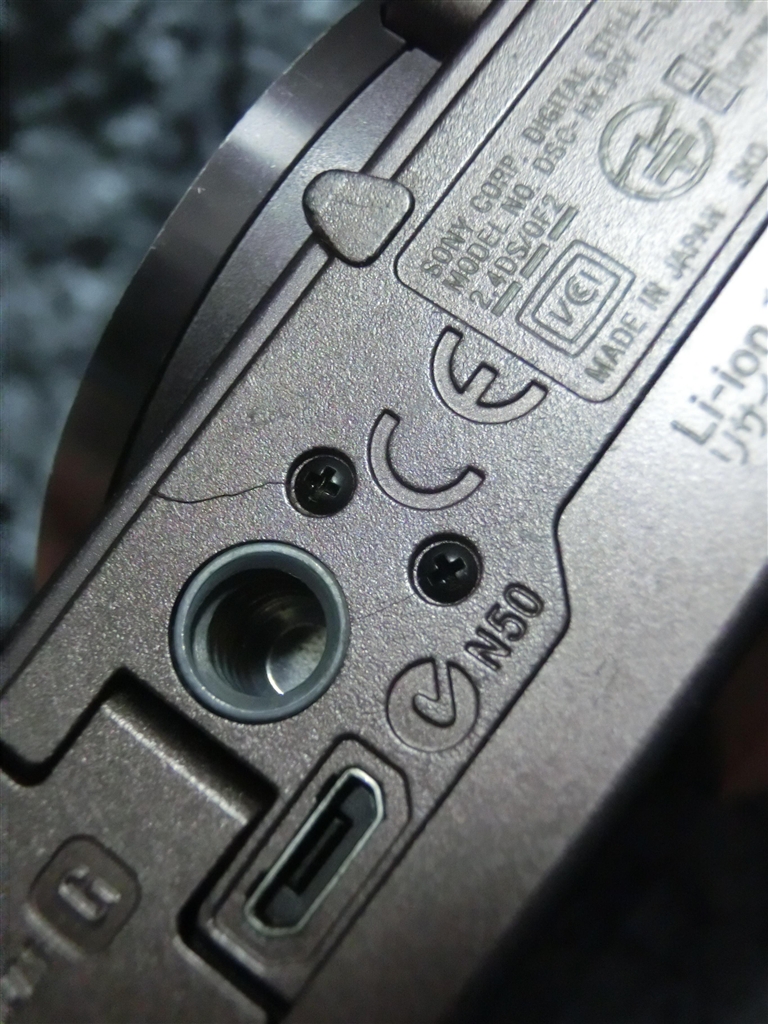 底面の大き目のヒビと細いヒビ