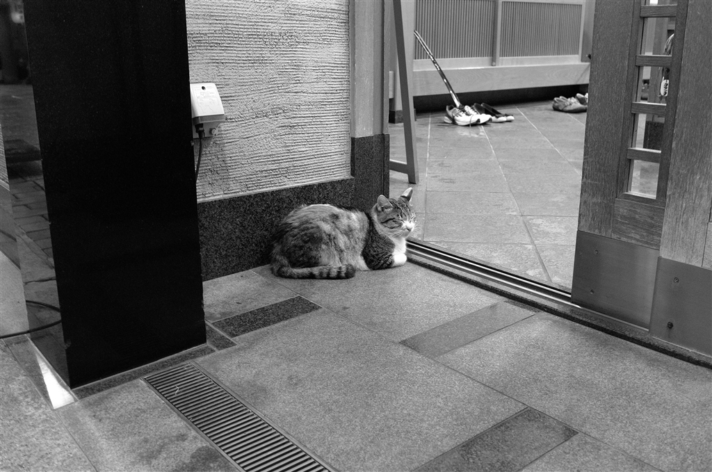 法善寺横丁にて。店番する猫。