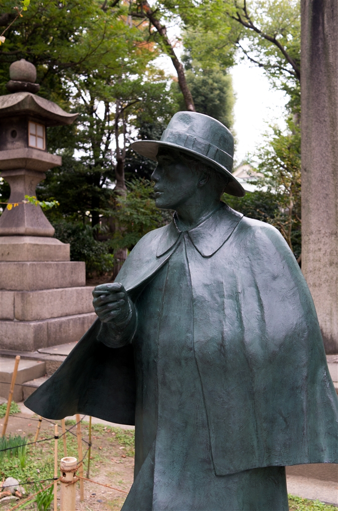 生玉神社に建造された織田作之助像。