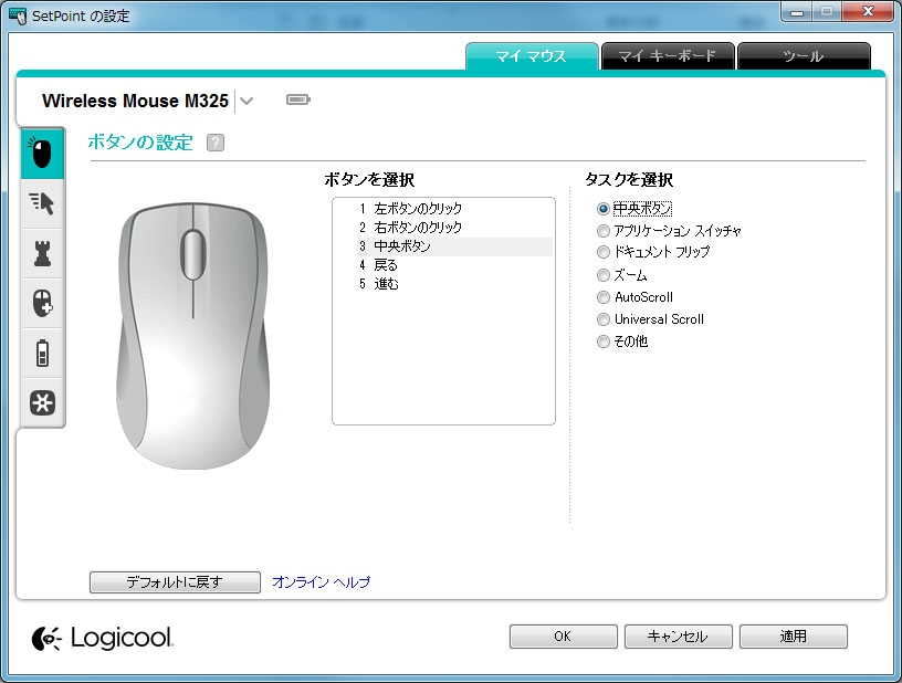 『私のPCのsetpoint画面:ボタン選択不可』ロジクール Wireless Mouse M325 Thomas69さんのクチコミ掲示板画像1/1