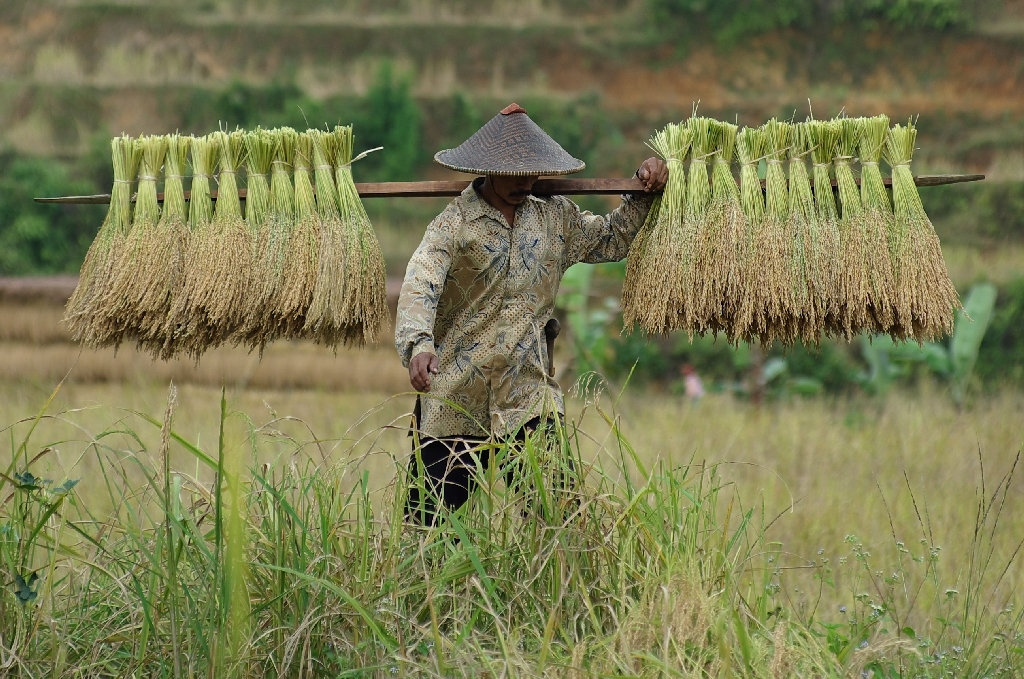 同じくDA50-135mmで農村の稲刈り