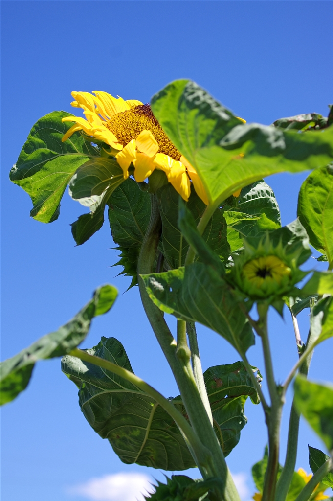@ ひまわり 背景は、青空と雲