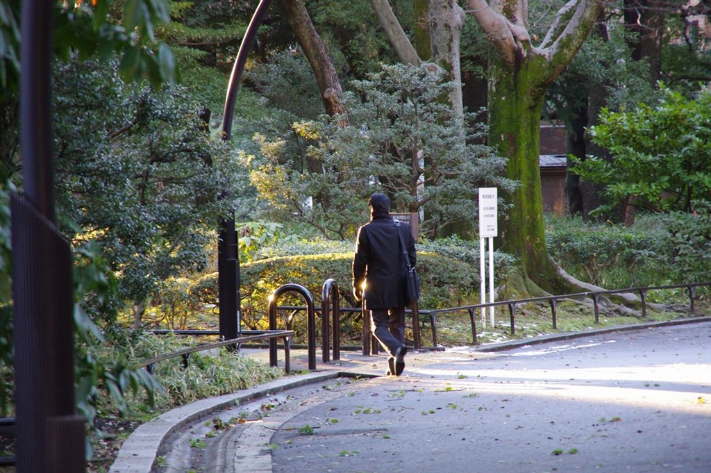 朝、公園を散歩する人