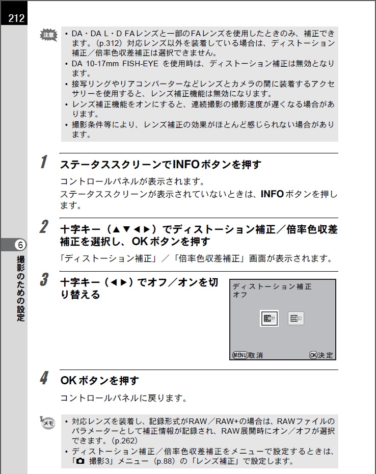 『取説 212ページ』ペンタックス PENTAX K-r ダブルズームキット delphianさんのクチコミ掲示板画像1/1