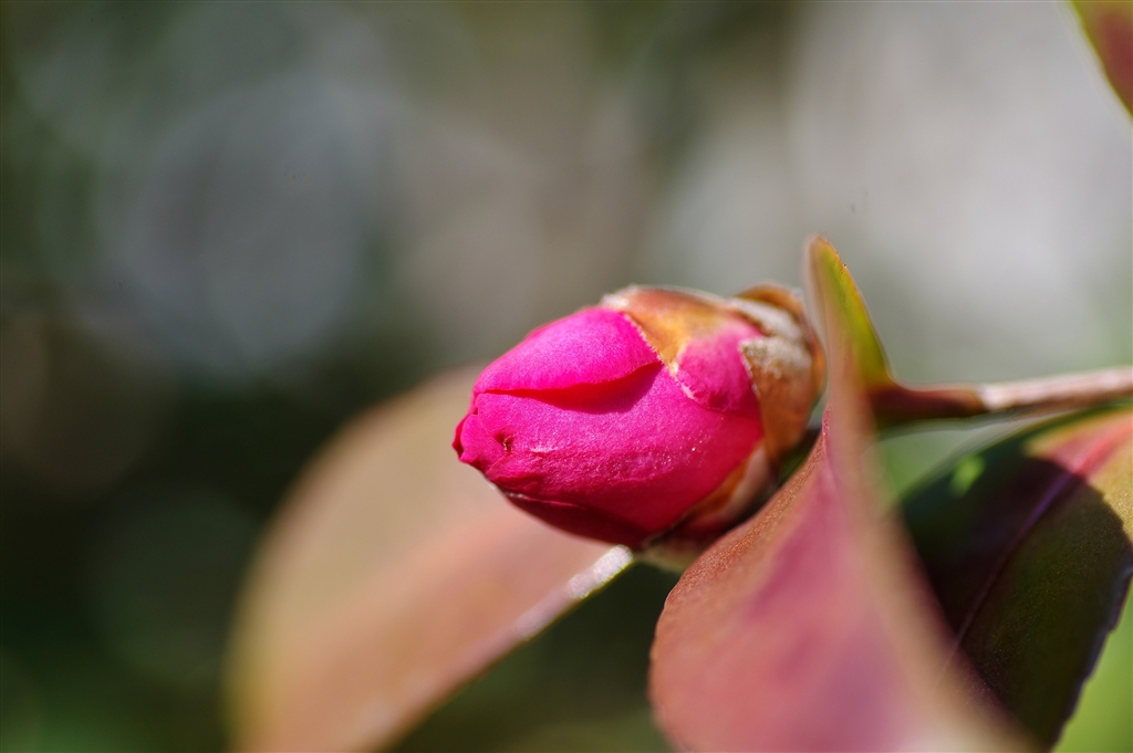 @ 山茶花の蕾 開花寸前?順光に輝いています。
