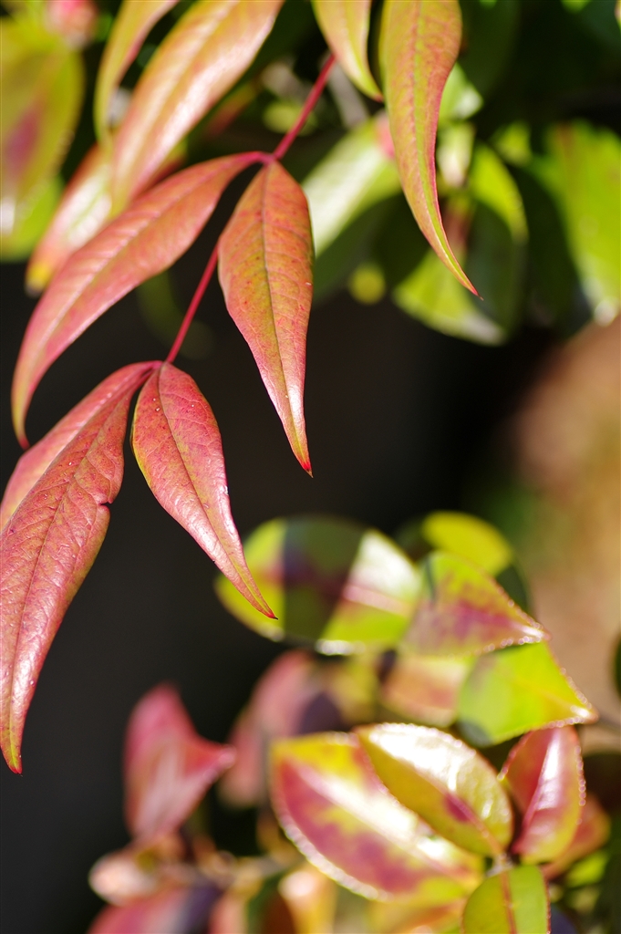 B 南天・色付き葉と山茶花の葉 順光です。
