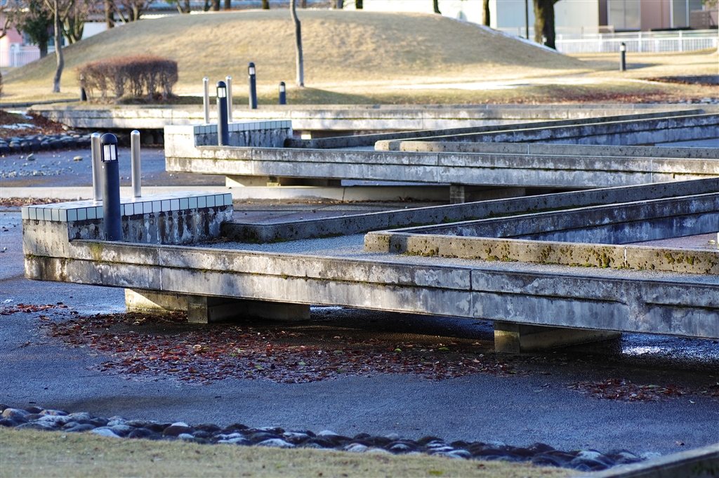 B 公園の人工池 橋のセメント繋ぎ目にピント