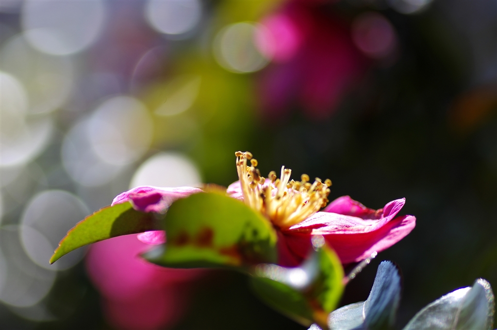 @ 山茶花しべ 背景に丸ボケ