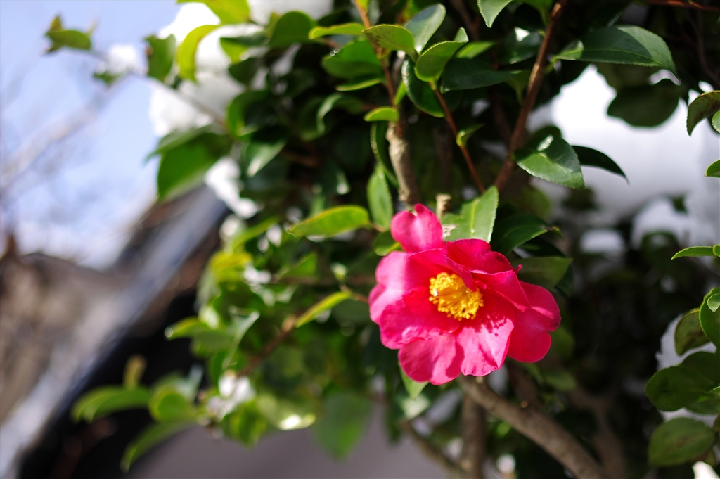 A ご近所の山茶花 花弁にピント
