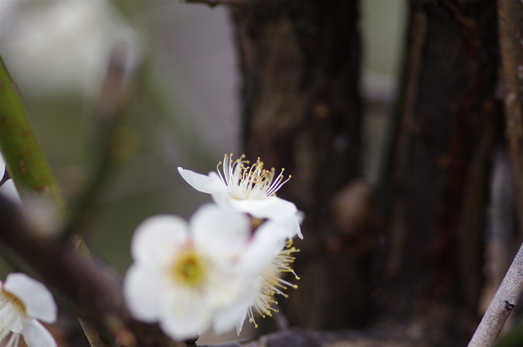 @ 白梅の黄色いしべにピント
