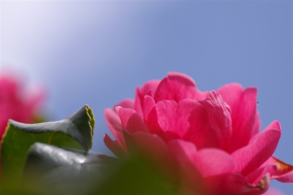 A 山茶花の花弁にピント