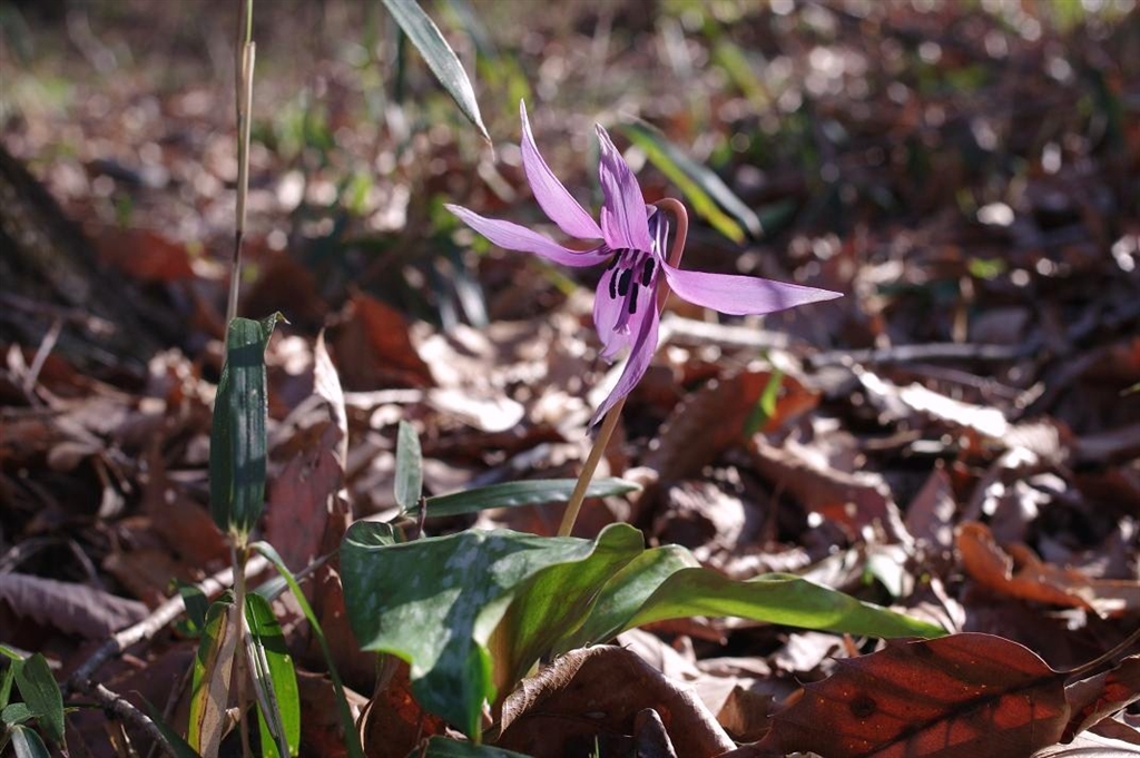 カタクリです。日が当たって色が飛んだので、少し彩度を上げました