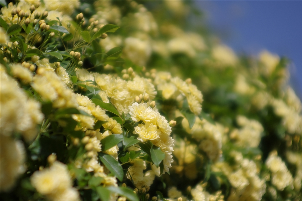 生垣の黄色い花々