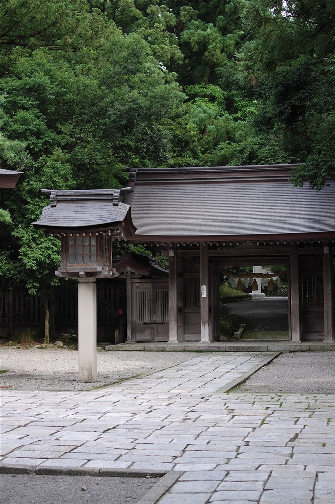 @本殿横の山門と樹木