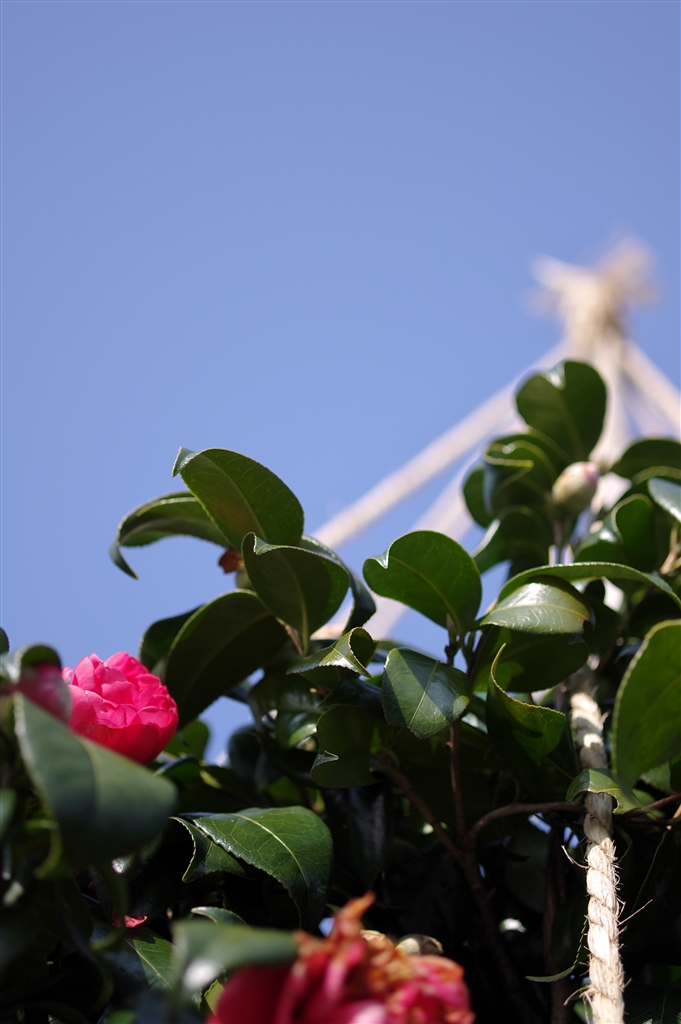 A ご近所のサザンカ 背景青空