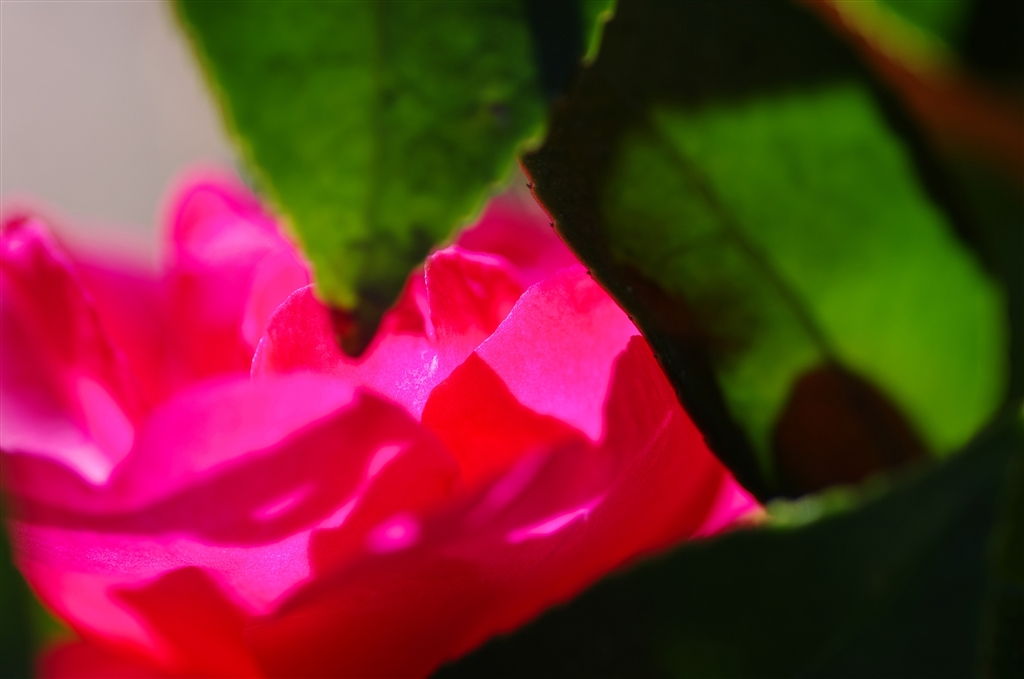 B サザンカの花弁に透過光
