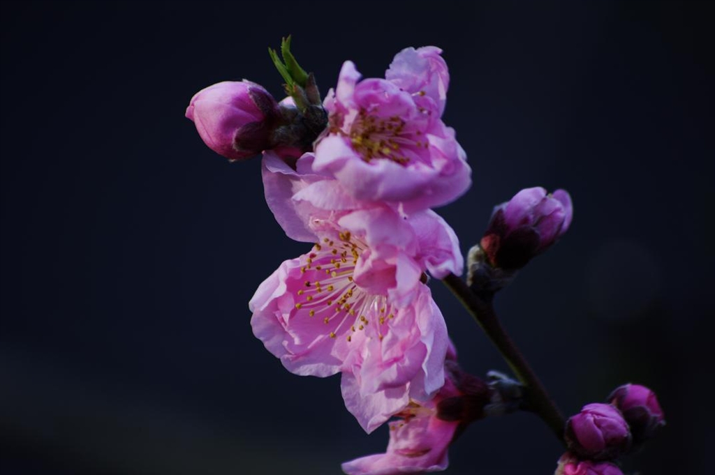 花桃です。90度の角度ですが、ビルの窓ガラスに反射した光です。