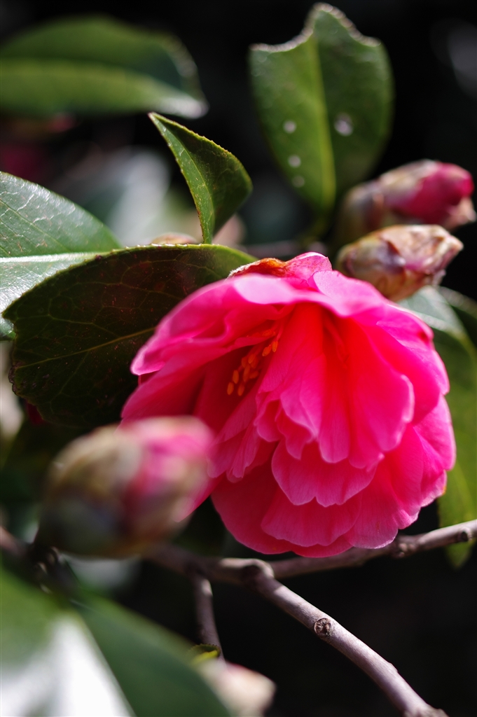 A 赤の椿 花と蕾