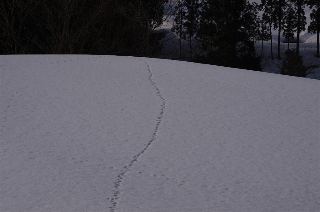 雪の上に動物の足跡が。