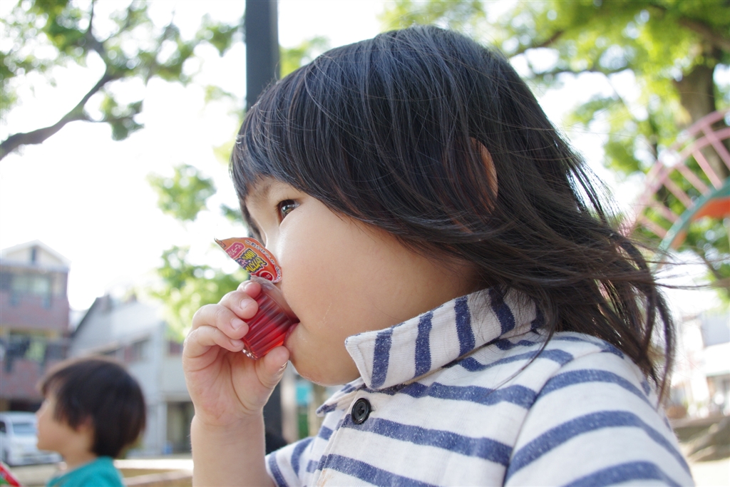 キットレンズです。ゼリーを食べる娘。