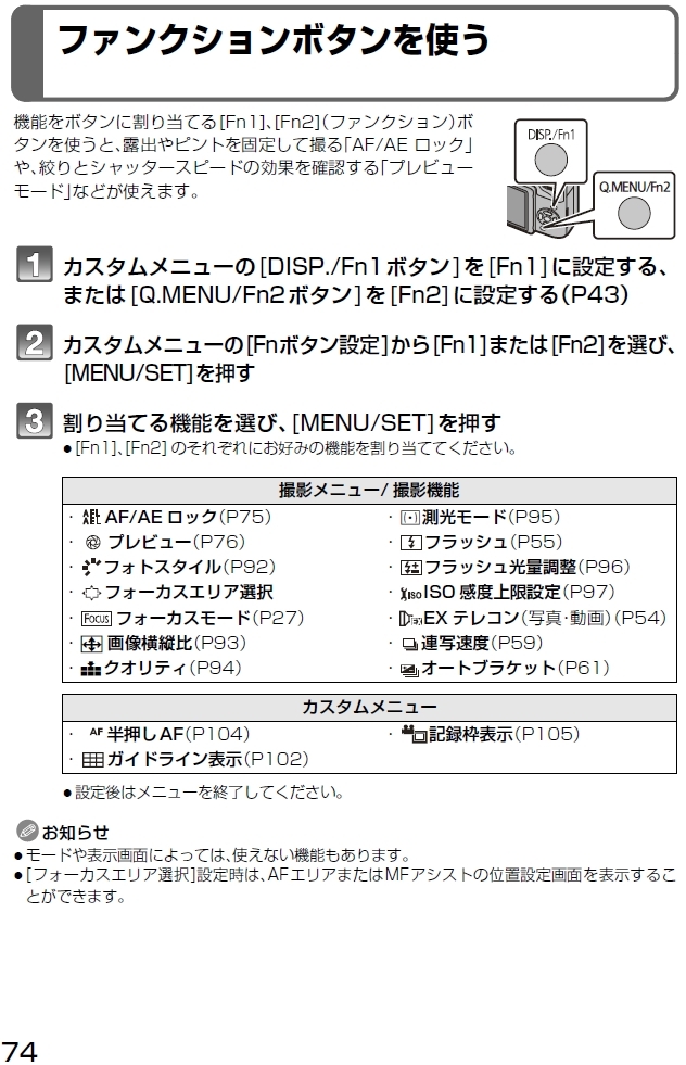 『fnボタン設定方法 (G3取説P74より)』パナソニック LUMIX DMC-G3 ボディ まるるうさんのクチコミ掲示板画像1/1