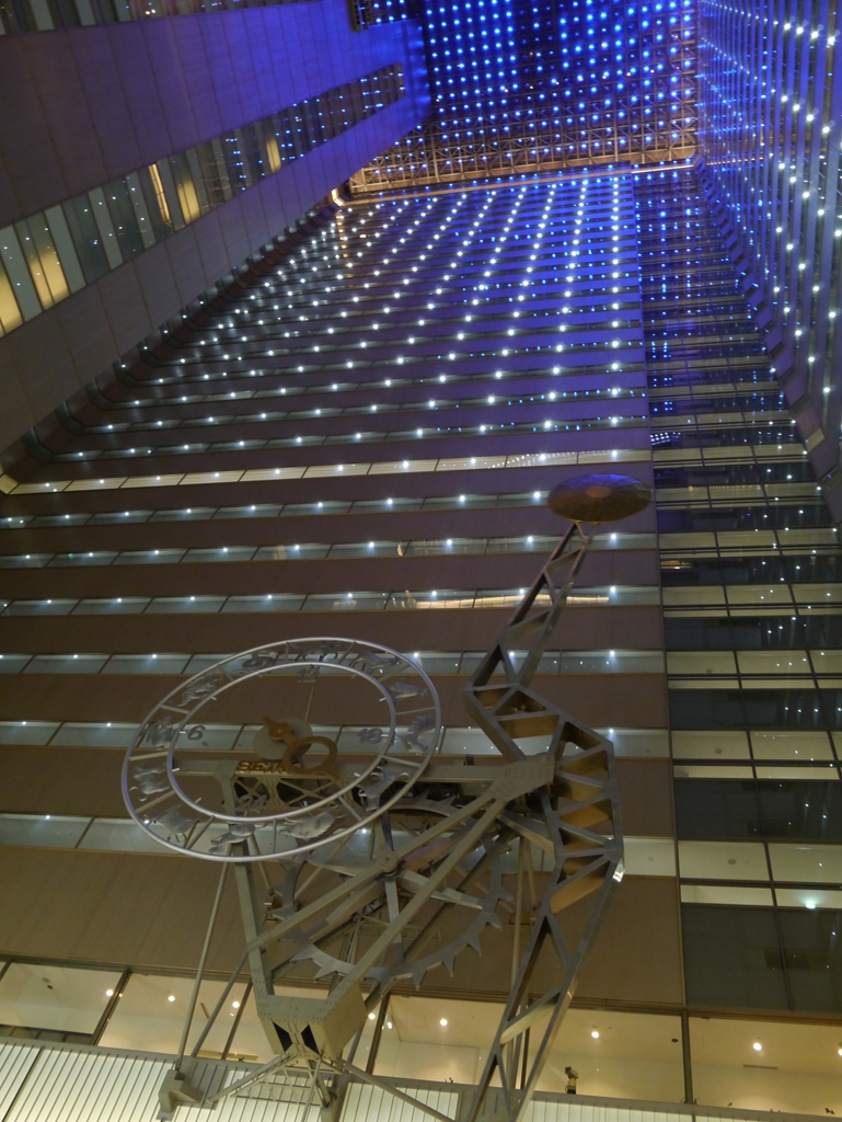 新宿NSビル内部大きな時計があって、ライトもきれいです。GX1の高感度いいです。