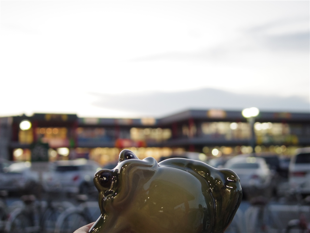 Qとほぼ同じ横幅の100均の蛙
